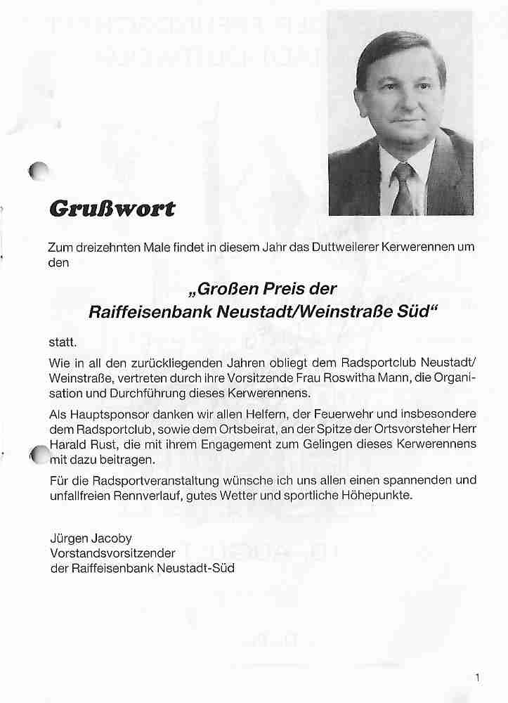 um den Großen Preis der Raiffeisenbank Neustadt-Süd über 61,2 Kilometer gewonnen. Kaufmann entschied das über 25 Runden führende Rennen vor Dirk Märkl (RC Bellheim), Sven Bauer (VC Frankfurt), Enrico Nikolai ((PSV Schwerin), Thomas Ackermann (RV Kandel) und Patrick Billian (GFR Ludwigshafen) für sich.