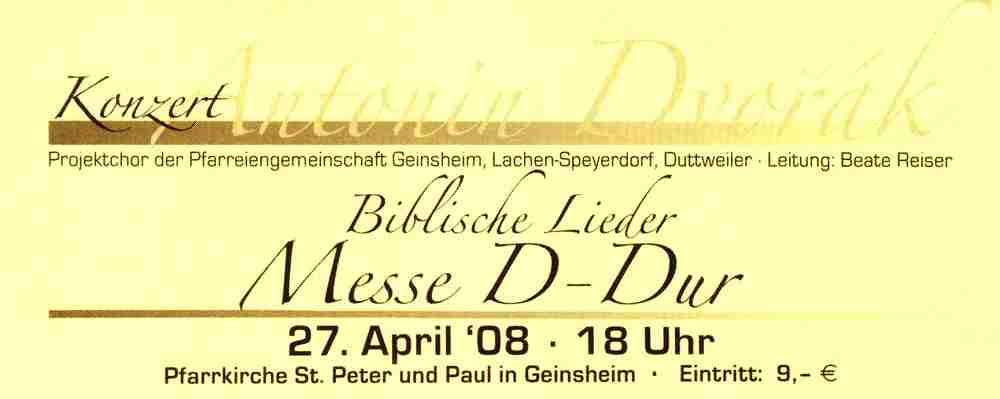 Konzert in Geinsheim Zum zweiten Mal haben sich die Chöre der Pfarreiengemeinschaft Geinsheim/Lachen- Speyerdorf/DuttweiIer zusammengetan und einen Projektchor initiiert, der ein großes Chorwerk einstudiert hat.