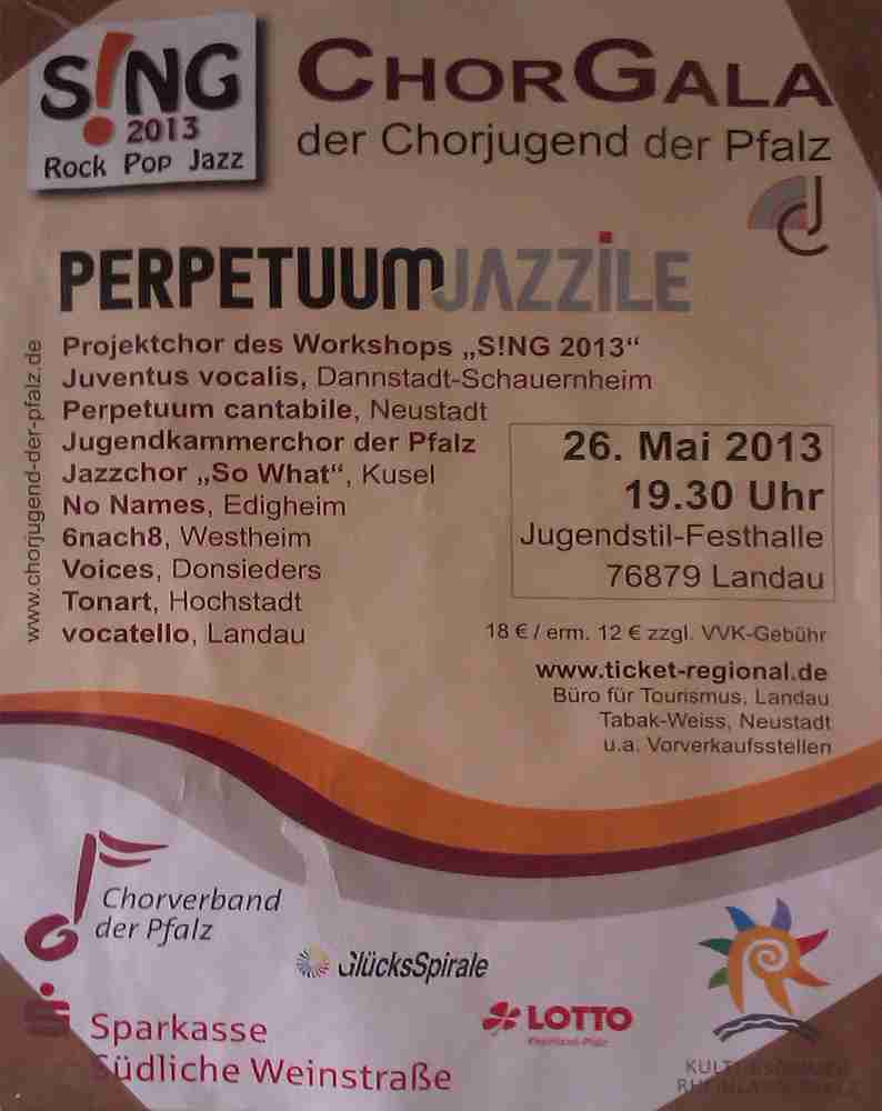 Perpertuum Cantabile singt mit Pfälzer Chorjugend Aufgrund der Witterungsprognose hat sich der MGV entschieden, das Konzert in die Festhalle zu verlegen