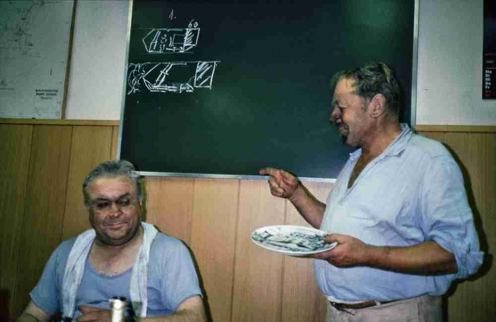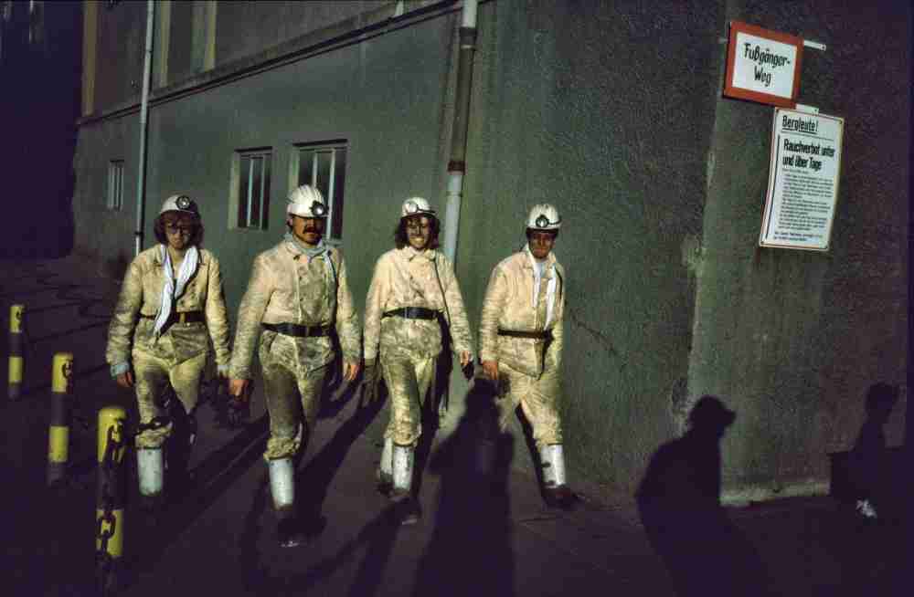 Der Kohlstaub setzte sich in die Poren, aber nach alter Bergmannssitte wurde zuerst ein kräftiges Mahl mit Lyoner verzehrt und mit Schnaps begossen, bevor mit der Wurzelbürste der hartnäckige Staub aus der haut geschrubbt werden konnte.
