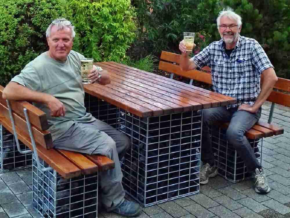 Die Ortsbeiräte Udo Scheid und Walter Scharfenberger waren wieder aktiv und haben am Bachlauf eine neue Sitzgarnitur aufgebaut.