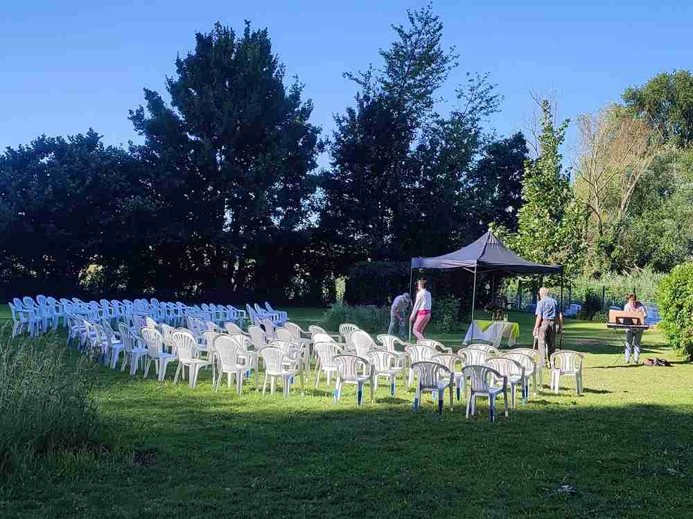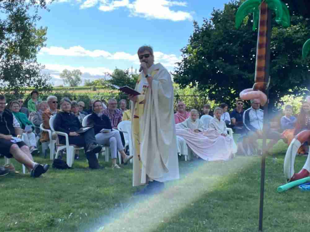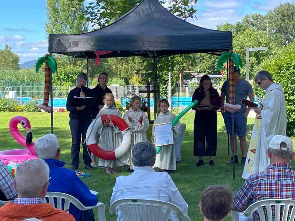 Das Rauschen des Laubes begleitete den Gottesdienst im Schwimmbad. Das waren die optimalen Rahmenbedingungen für den sehr gut besuchten Gottesdienst im Schwimmbad. Und im Anschluss gab es wieder Weißwürste.