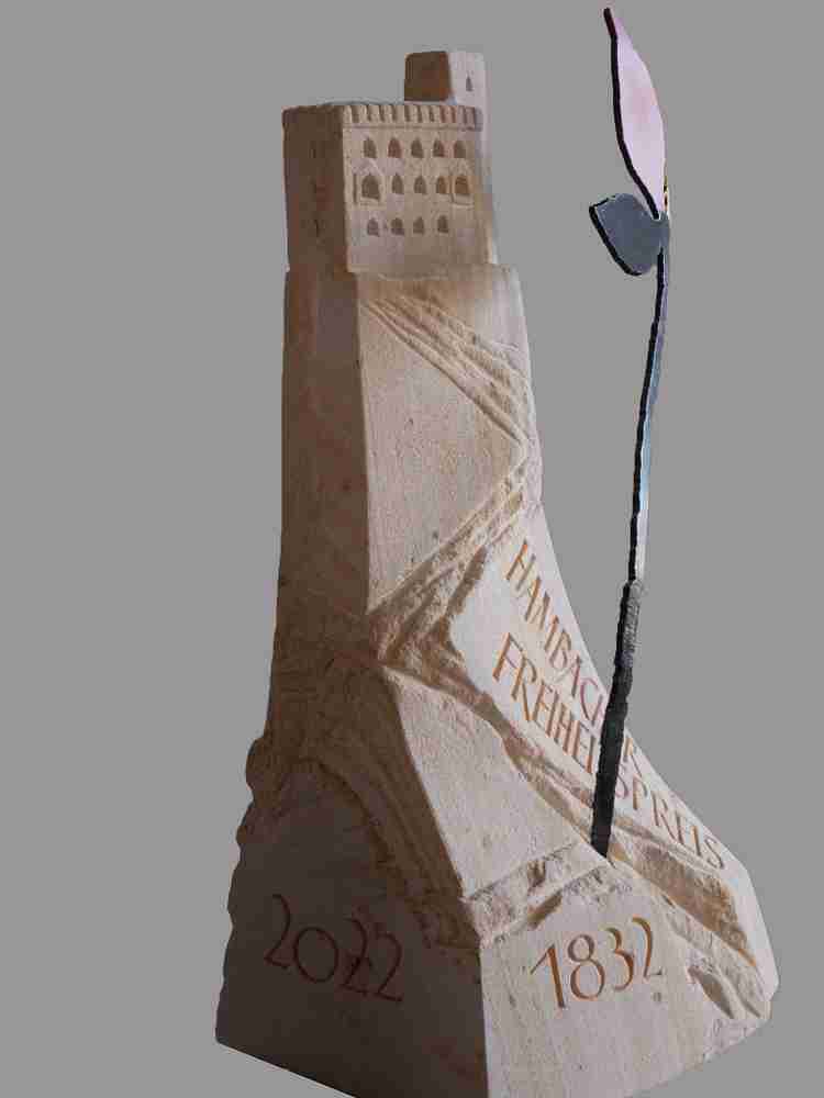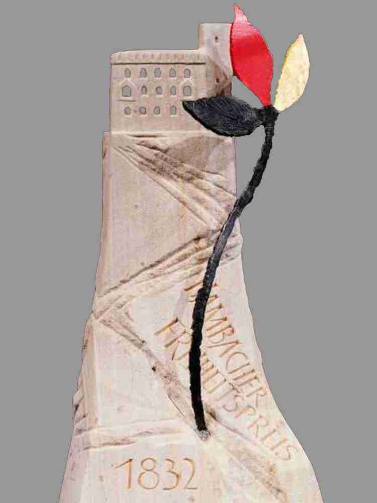Der ehemalige Bundespräsident Joachim Gauck wurde im Rahmen des Demokratiefestes mit dem "Hambacher Freiheitspreis 1832" ausgezeichnet. In der Rheinpfalz erklärt er die Bedeutung seiner Arbeit aus Haardter Sandstein: Gezeigt wird der Weg aufs Schloss, eher als alpinistische Bergtour, bei der man sich laut Mathäss auch in eine „Todeszone“ begibt. Gleichzeitig soll der Weg wie eine Soll-Bruchstelle wirken, die am Ende bewirkt, dass das alte System zerfällt. Heraus sprießt: „das zarte Pflänzchen“ Demokratie, dessen Samen die Menschen 1832 gelegt haben.