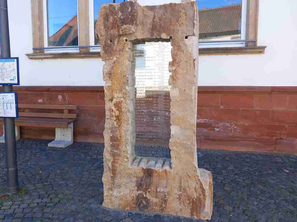 Endlich geschafft - in Geinsheim wurde jetzt das von Bernhard Mathäss geschaffene Denkmal für die aus Geinsheim stammenden Opfer der NS-Zeit eingeweiht. Bis es soweit war, gab es im Nachbarort viele Diskussionen und Befindlichkeiten, bis schließlich von einem Arbeitskreis die jetzt präsentierte Lösung erarbeitet wurde. Mathäss berichtete, dass das Denkmal aus gelbem Sandstein vom Haardtrand ist, der auch in der Geinsheimer Kirche und beim Rathaus verwendet worden sei, und der für Heimat stehe. Die Mitte des Steins habe er „herausgerissen“, als Symbol „für das monströse Geschehen, für das der Stein steht“. Die Namen der Opfer sind azf einer Glasplatte in der Mitte des Steins verewigt.