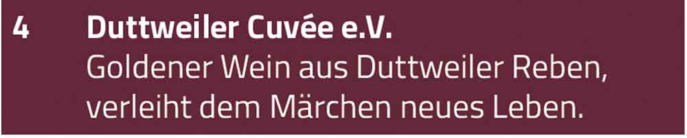 "Goldener Wein aus Duttweiler Reben, verleiht dem Märchen neues Leben." - Das war das Motto vom Duttweiler Cuvée beim diesjährigen Winzerfestumzug anlässlich des Deutschen Weinlesefestes in Neustadt. Die Jury belohnte die Idee und Ausführung mit dem 2. Preis der Stadt Neustadt, der mit 250,00 € dotiert war,