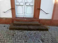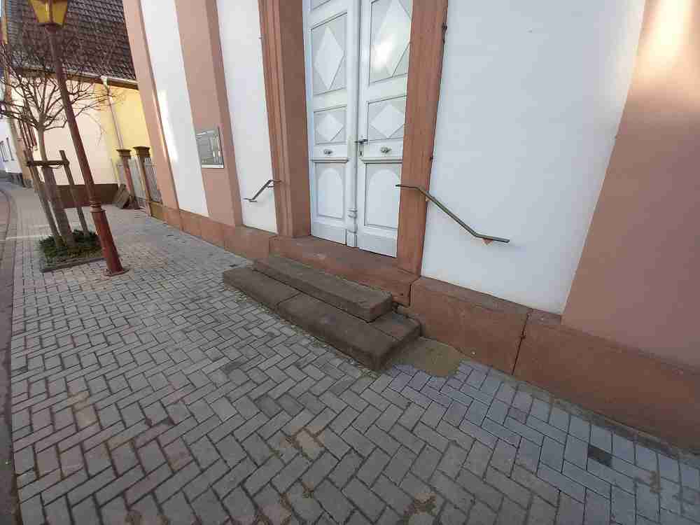 Seit Menschengedenken ist vor der protestantischen Kirche ein Gitterrost eingebaut. Schon so mancher Stöckelschuh hat sich in all den Jahren wohl darin verfangen.