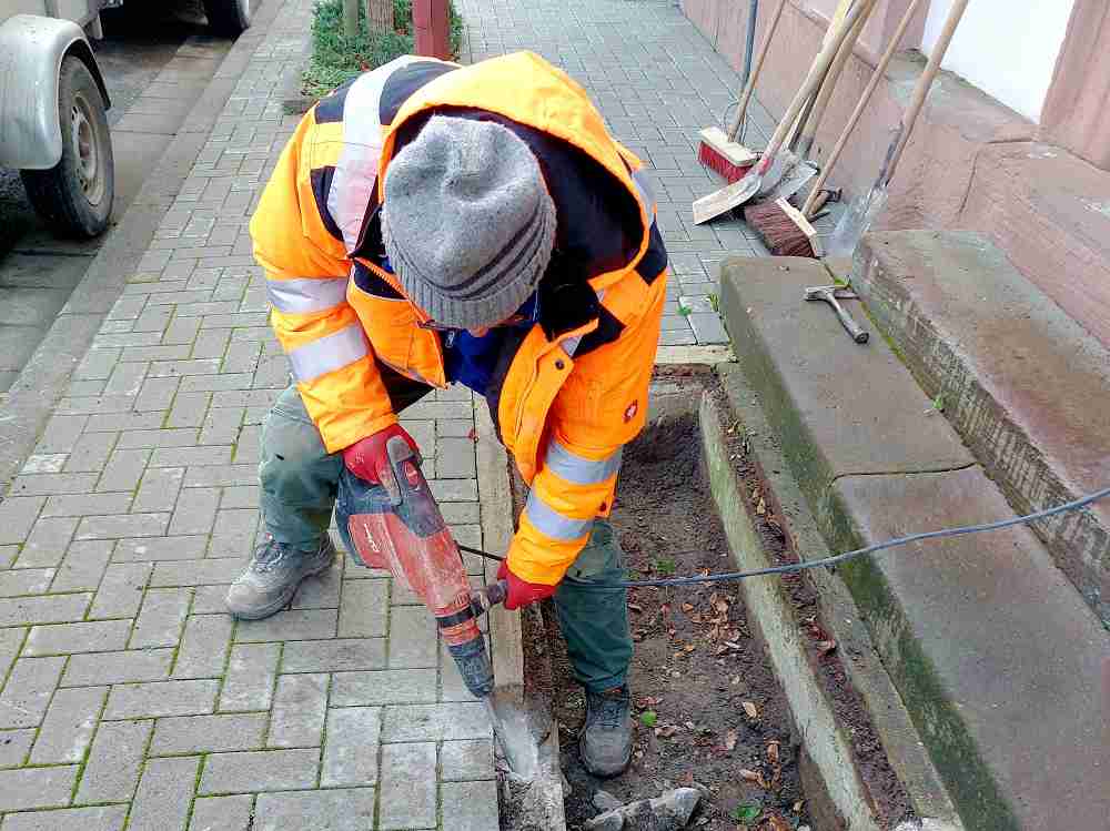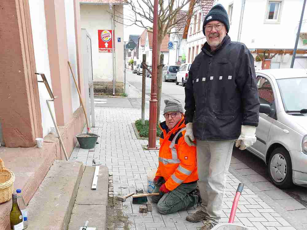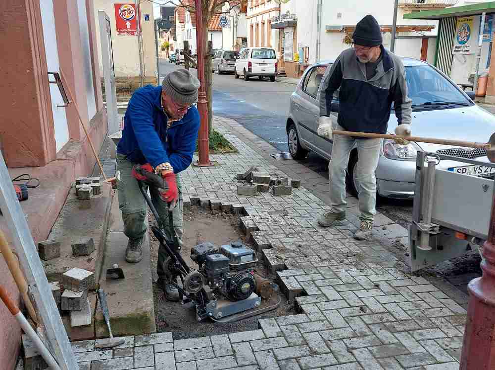 Also beschloss der Vereinsvorstand kurzerhand, dass das Ding weg soll. Gesagt getan, Großhans organisiert Pflastersteine und Schotter, Udo Scheid und Walter Scharfenberger entfernten den alten Rost samt Betoneinfassung und verlegten die neuen Steine.
