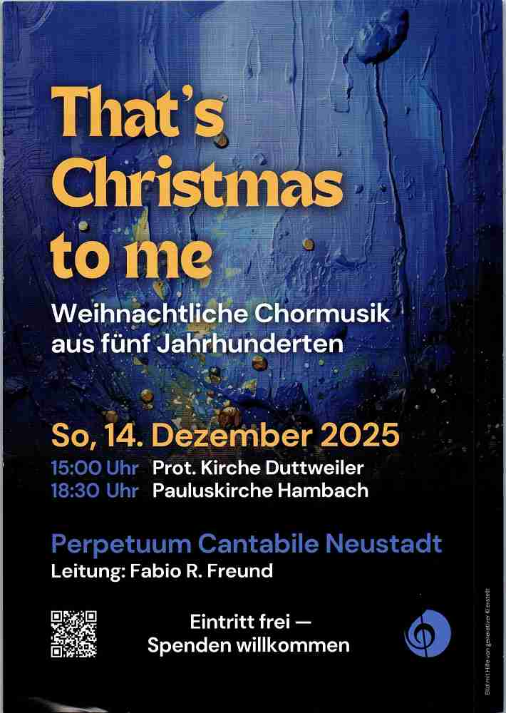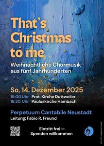 Mit „That’s Christmas to me – Weihnachtliche Chormusik aus fünf Jahrhunderten“ präsentierte Perpetuum Cantabile ein vielfältiges Programm. Erst um 15 Uhr in der Protestantischen Kirche in Duttweiler, dann um 18.30 Uhr mit einer weiteren Aufführung in der Pauluskirche Hambach.