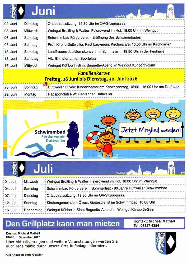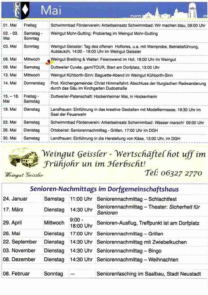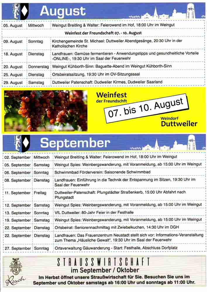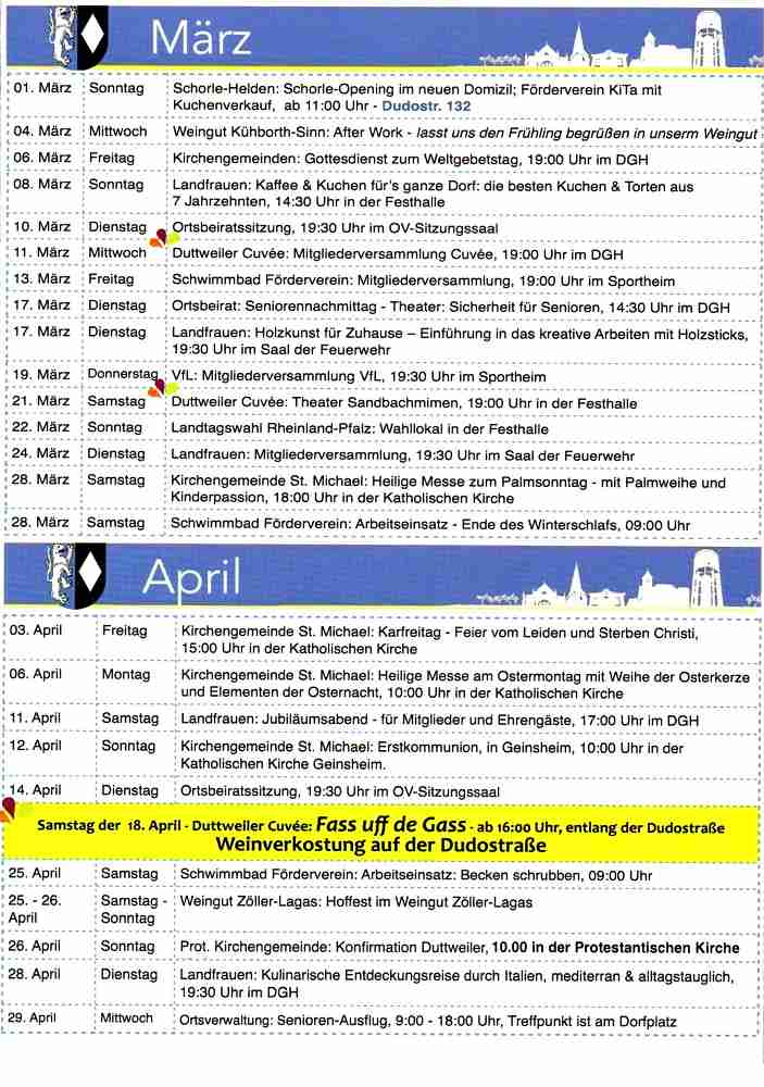 Veranstaltungskalender verteilt