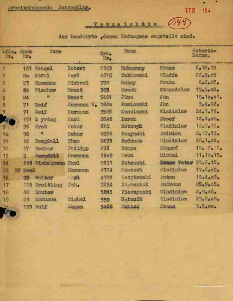 Arbeitskommando Duttweiler - Landwirte zugeteilte Gefangene